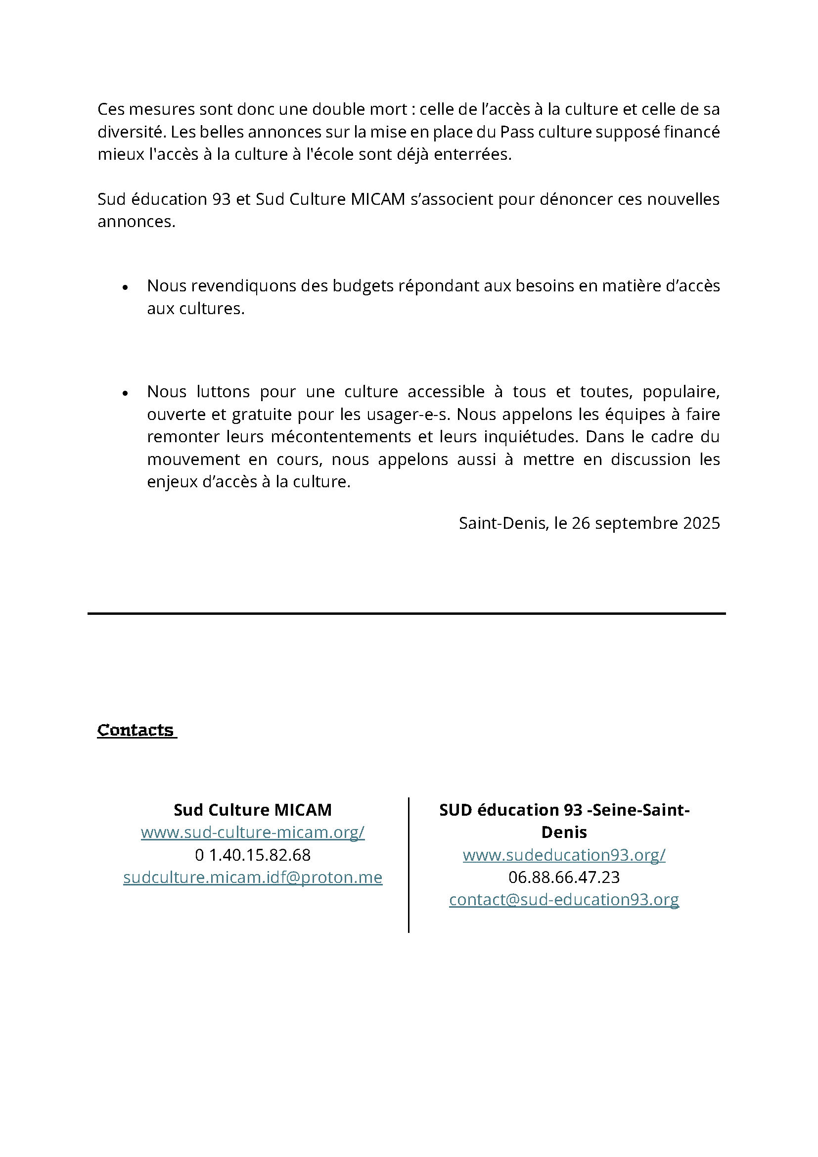 Communiqué de Sud Culture 34